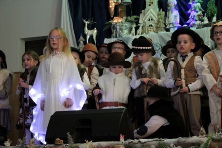 Motywem przewodnim całego spektaklu było „oczekiwanie” na Zbawiciela, na jego przyjście na ten świat. W przedsięwzięciu wzięli udział uczniowie klas 0-IV ze Szkoły Podstawowej w Malinówce, którzy odegrali pięknie swoje role wcielając się w pastuszków, zatańczyli cudowne tańce a także wcielili się w Świętą Rodzinę. Cały spektakl został okraszony pięknymi kolędami i pastorałkami w wykonaniu szkolnego koła wokalnego prowadzonego przez panią Anetę Opalińską. Nauczyciele ze Szkoły Podstawowej w Malinówce również wystąpili na scenie prezentując piękne kolędy i pastorałki.