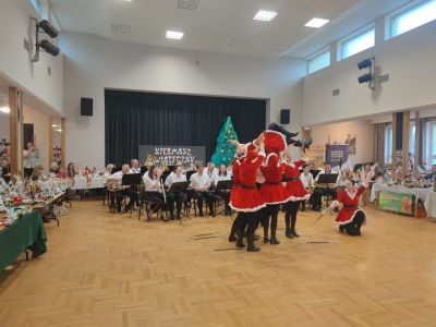 Artystyczną oprawę kiermaszu zapewniły zespoły działające przy GOKiW w Haczowie. Na Sali Widowiskowej zaprezentował się Zespół Mażoretek „ARIA”, który zachwycił publiczność dynamicznymi układami choreograficznymi w świątecznych kostiumach. Świąteczny repertuar Orkiestry Dętej „Hejnał” dodatkowo podkreślił nastrój zbliżających się Świąt Bożego Narodzenia, tworząc niepowtarzalną atmosferę i wprowadzając gości w radosny, uroczysty klimat.