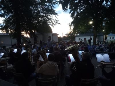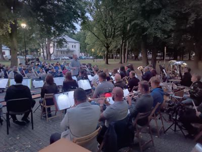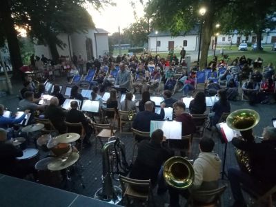 Wieczór rozpoczął się koncertem muzyki filmowej w wykonaniu Orkiestry Dętej Hejnał. Publiczność miała okazję usłyszeć znane i lubiane utwory z takich filmów jak „Alladyn”, „Noce i dnie”, „Ostatni Mohikanin”, „Piraci z Karaibów” czy „James Bond”. Co ciekawe, podczas koncertu na ekranie wyświetlane były fragmenty filmów, z których orkiestra przygotowała muzykę, co tworzyło niesamowitą atmosferę i pozwalało jeszcze bardziej wczuć się w klimat.