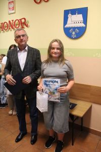 W poniedziałek, 16 czerwca 2025 r. Wójt Gminy Haczów Stanisław Jakiel wręczył dyplomy i nagrody uczniom ze Szkół Podstawowych z terenu Gminy Haczów, którzy wzięli udział w gminnym konkursie plastycznym pn. „Recykling: odpady segregujesz – surowce odzyskujesz”.