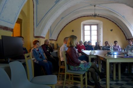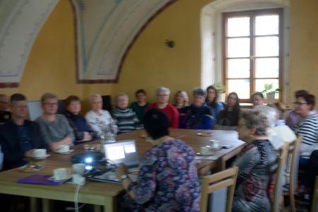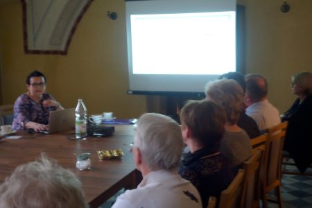 W bardzo ciekawy i szczegółowy sposób opowiadała i prezentowała piękne foldery z podróży po Kresach Wschodnich. Dodatkowym atutem spotkania było połączenie wykładu z cytowaniem przepięknych strof wybranych z cennego kanonu polskiej prozy, poezji i spisanych wspomnień wybitnych Polaków żyjących lub przebywających kiedyś na Kresach. Pani Zofia przeplatała również swoją relację pięknymi utworami muzycznymi w wykonaniu znamienitych pieśniarzy i bardów polskiej sceny muzycznej, nacechowanymi miłością i wspomnieniami z podróży po Kresach.