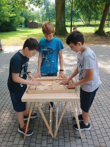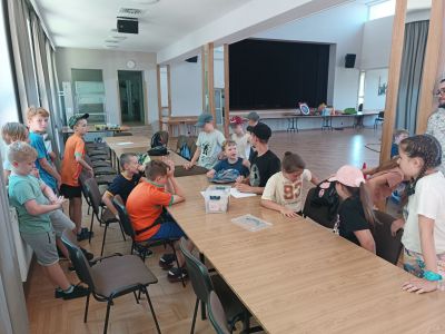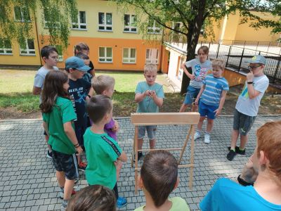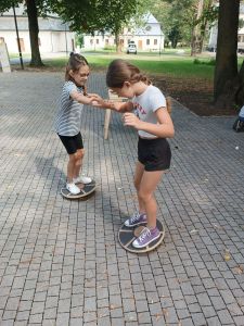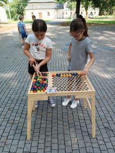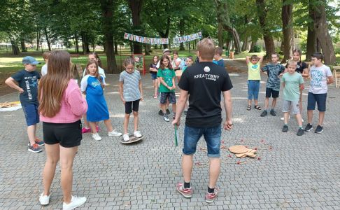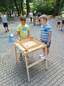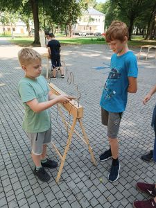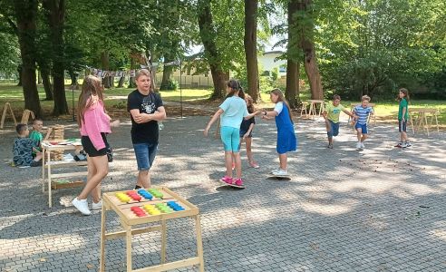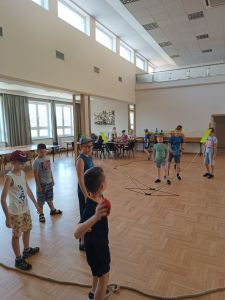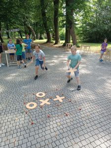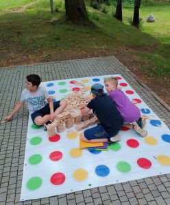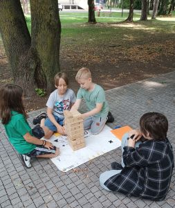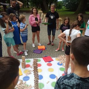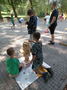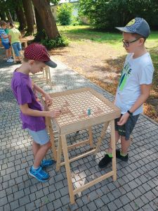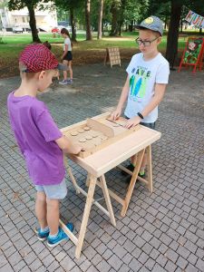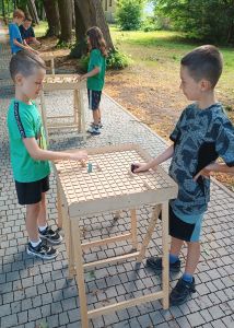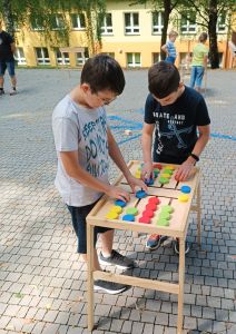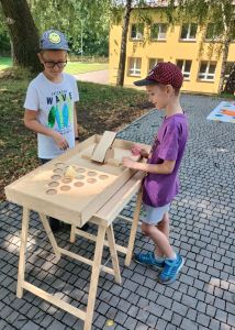 Podczas drugiego dnia zajęć wakacyjnych gościliśmy animatorów z Mini Brain Academy z Rzeszowa , którzy odwiedzili nas z manualnymi grami wielkoformatowymi. Zabawa była przednia: dzieci ćwiczyły zręczność, koncentrację, refleks, szybkość, pamięć, umiejętność skupienia uwagi. Słowem – trenowały swoje mózgi. Oprócz działań indywidualnych, uczestnicy zajęć brali udział w wielu konkurencjach, w rywalizacji drużynowej.