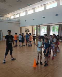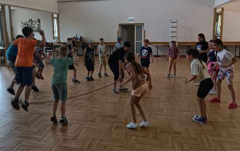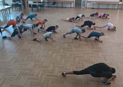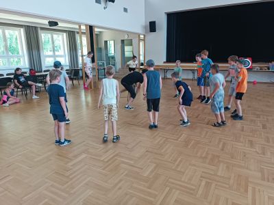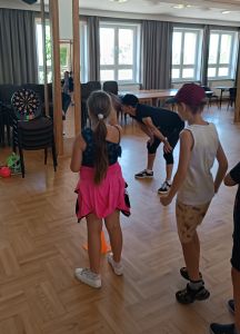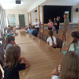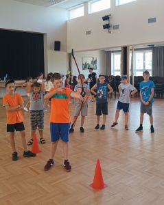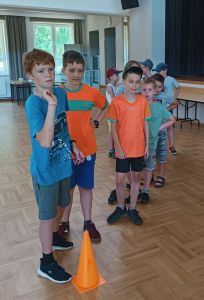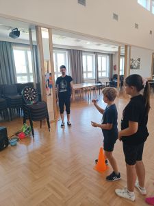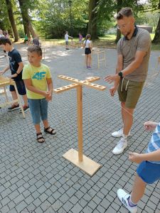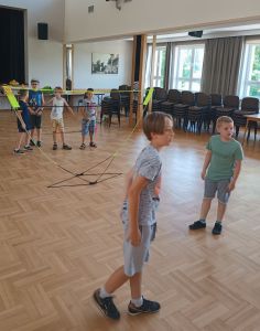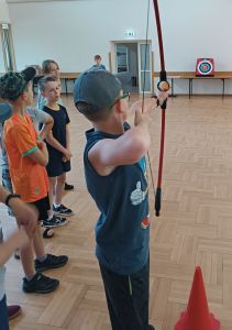 W dniach 24 – 26 lipca 2023 Gminny Ośrodek Kultury i Wypoczynku w Haczowie zorganizował zajęcia wakacyjne dla dzieci ze szkół podstawowych z terenu Gminy Haczów. Na pierwszy dzień wypoczynku zaplanowane zostały zajęcia ruchowo-taneczne i zabawy z animatorem, gry planszowe, zajęcia plastyczne oraz seanse filmowe. To był dzień pełen wrażeń, ruchu, rozgrywek, rywalizacji, emocji i świetnej zabawy. Zajęcia rozpoczęły się od rozgrzewki ruchowej, następnie dzieci wzięły udział w rywalizacji sportowej, mierząc się w darcie i strzelaniu z łuku.
