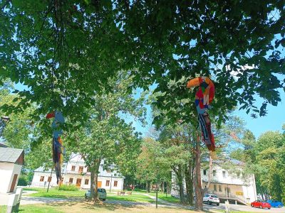 Część uczestników wybrało zajęcia plastyczne, w trakcie których wykonali przepiękne, kolorowe ptaki, które zdobić będą drzewa w parku.