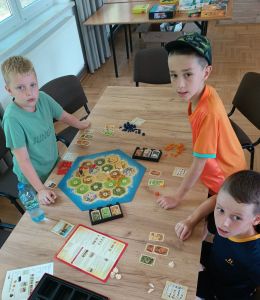 Na koniec, dzieci usiadły do gier planszowych, które, jak się okazało wygenerowały nie mniej emocji niż wcześniejsza rywalizacja sportowa. Zabawa była tak dobra, że zabrakło czasu na seans filmowy, jednak dla dzieci nie stanowiło to żadnego problemu.