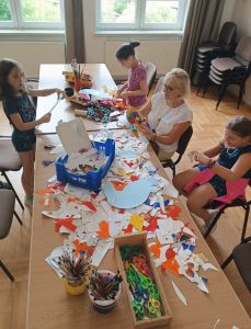 Równocześnie z turniejem, w ostatnim dniu zajęć wakacyjnych w GOKiW odbywały się zajęcia plastyczne pod okiem Pani Renaty Czerwińskiej.