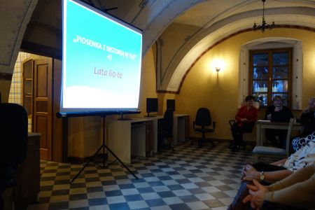 Gościem specjalnym wieczoru z muzyką była Pani Dorota Gierlach, która przygotowała multimedialną prezentację na temat polskiej muzyki lat 60. Przybliżyła sylwetki największych gwiazd polskiej sceny muzycznej tamtych lat, omówiła ich dorobek artystyczny, przypomniała największe przeboje oraz zaprezentowała oryginalne nagrania z koncertów takich artystów jak: Wioletta Villas, Irena Santor, Czesław Niemen, Anna German, zespół „Filipinki” i wielu innych. Pani Dorota skoncentrowała się na prezentacji debiutów muzycznych, ponieważ okazało się ,że lata 60. są tak płodne i przebogate w dorobek muzyczny, ilość solistów, muzyków, zespołów i kompozytorów, że nie sposób w jeden wieczór przekazać tylu informacji.