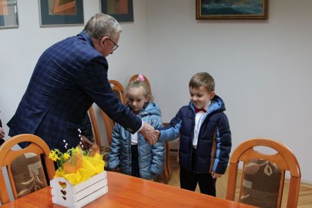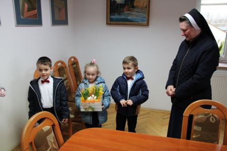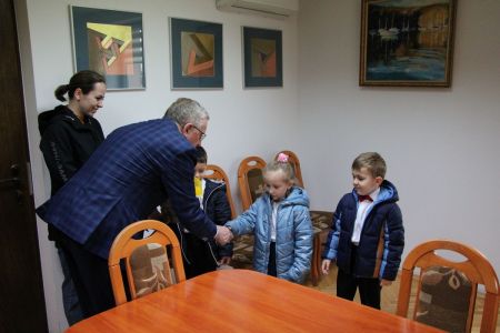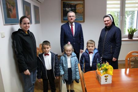 Tradycją już jest, że w czasie przedświątecznym u wójta zjawiają się także najmłodsze dzieci. I tym razem dzieci z Ochronki św. Józefa w Haczowie wraz z opiekunami odwiedziły Wójta Gminy Haczów przynosząc stroik świąteczny i składając wszystkim pracownikom życzenia świąteczne. Wójt podziękował za ten piękny prezent i wręczył dzieciom słodkie podarunki. Życzył im także spędzenia zdrowych i radosnych świąt.