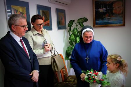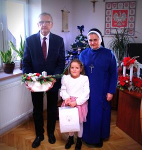 Dzisiaj w Urzędzie Gminy Haczów gościliśmy wyjątkowych gości – Siostrę wraz z jednym z przedszkolaków z Ochronki z Jasionowa, które przyszły złożyć Panu Wójtowi Gminy Haczów serdeczne życzenia bożonarodzeniowe.