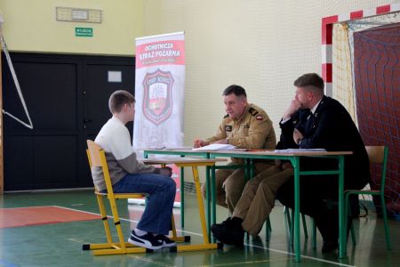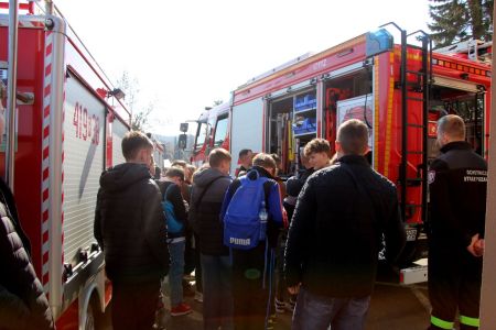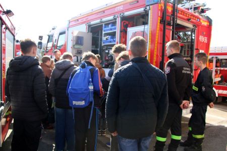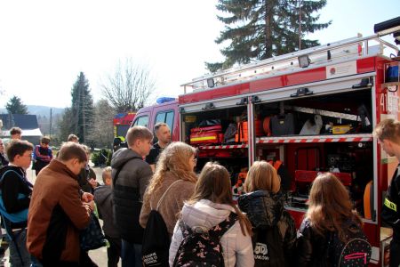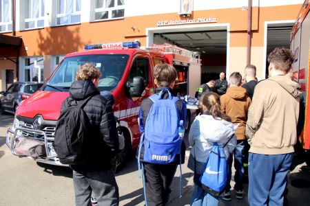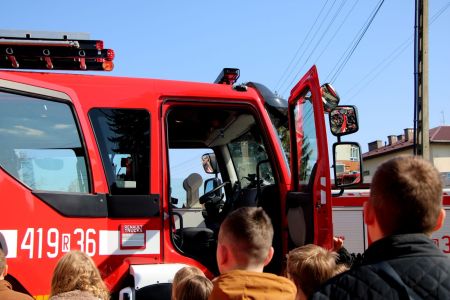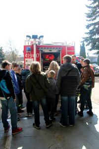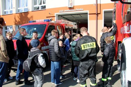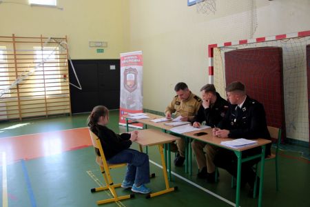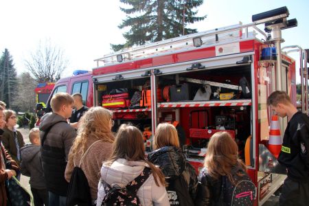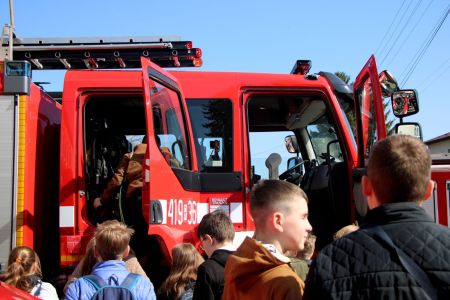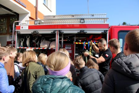 W przerwie pomiędzy częścią pisemną i ustną uczestnicy mieli okazję zapoznać się ze wyposażeniem wozów strażackich jednostki Ochotniczej Straży Pożarnej w Jabłonicy Polskiej.