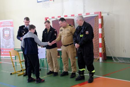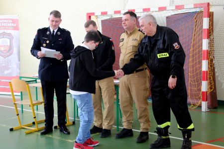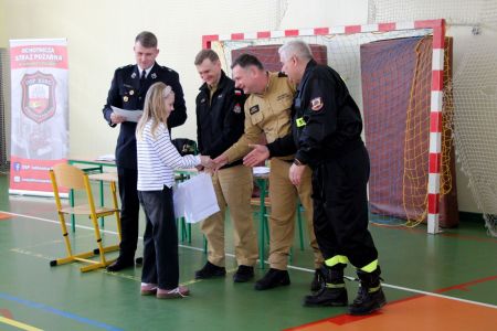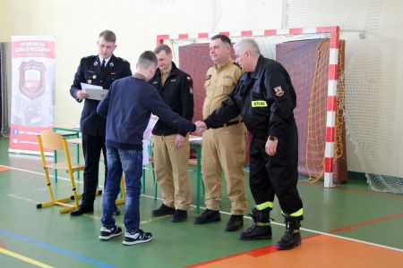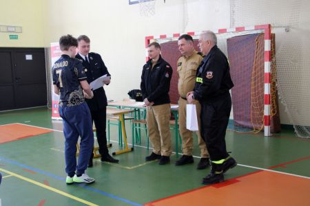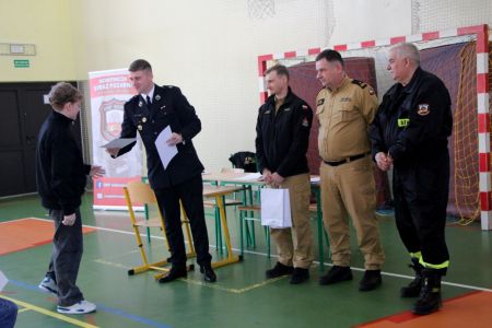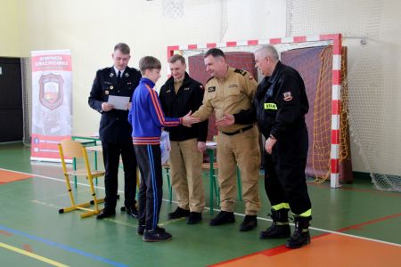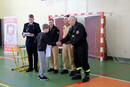 Z części pisemnej wyłoniono troje laureatów z I grupy wiekowej i pięcioro z grupy II (punkty ex aequo z testu) . Uczniowie ci w drugim etapie odpowiadali na 3 pytania. W wyniku rozgrywek finałowych jury w składzie: asp. sztab. mgr inż. Karol Rachwał, mł. bryg. Marek Kołodziej oraz Komendant Gminny ZOSP RP Szymon Sieniawski, wyłoniło zwycięzców: