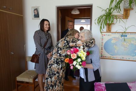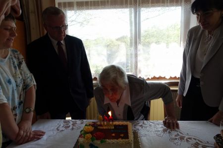 Z życzeniami od władz samorządowych przybyli Wójt Gminy Haczów Stanisław Jakiel i Kierownik Urzędu Stanu Cywilnego w Haczowie Małgorzata Nowicka. Gratulacje złożyli również przedstawiciele Kasy Rolniczego Ubezpieczenia Społecznego przekazując list gratulacyjny z informacją o dodatku specjalnym przeznaczonym dla osób uprawnionych do emerytury rolniczej, którzy ukończyli 100 lat.