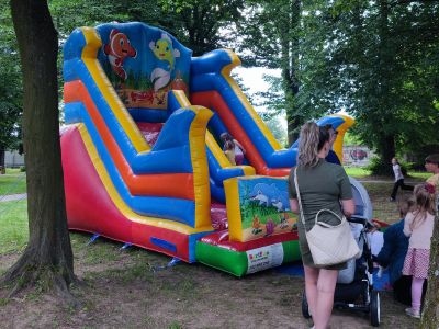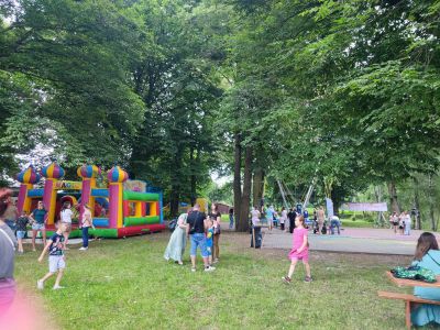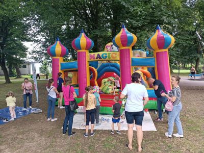 Niedzielne popołudnie, mimo kapryśnej pogody zgromadziło wiele rodzin z dziećmi, które mogły skorzystać z różnego rodzaju atrakcji. Dla najmłodszych przygotowana została darmowa strefa rekreacyjna z urządzeniami dmuchanymi, sfinansowana dzięki środkom z gminnego programu profilaktyki i rozwiązywania problemów alkoholowych, przeciwdziałania narkomanii i innym uzależnieniom. Ponadto uczestnicy imprezy mogli skorzystać również z obficie zaopatrzonej gastronomii, lodów i przekąsek czy zakupić gadżet na stoisku z zabawkami.