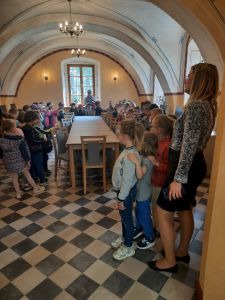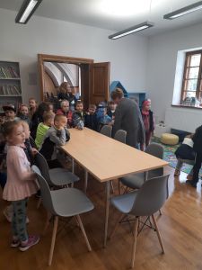 W dniu 6 maja dzieci z Przedszkola Samorządowego w Haczowie odwiedziły Gminną Bibliotekę Publiczną. Dla wielu z nich była to pierwsza wizyta w bibliotece. Maluchy miały okazję widzieć nową bibliotekę mieszczącą się w odrestaurowanym Dworze Haczowskim. Przedszkolaki zwiedziły piękną placówkę, dowiedziały się, na czym polega praca bibliotekarza oraz jak należy się w niej zachowywać. Dzieciom bardzo spodobały się kolorowe i bogato zdobione wnętrza, kolorowe książki, bajeczki i zabawki w kąciku zabawowym. Dzieci bardzo uważnie wysłuchały krótkiej historii Dworu, obejrzały wystawę historyczną i zadawały ciekawe pytania. Dowiedziały się, że Państwo Urbańscy kochali książki i zachęcali do czytania ówcześnie żyjące dzieci i wpajali im szacunek do literatury, kultury i sztuki poprzez naukę pisania, czytania, haftowania i szycia.