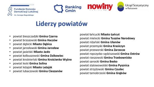 Ranking jest efektem współpracy Fundacji Rozwoju Demokracji Lokalnej im. Jerzego Regulskiego i „Nowin”, przy merytorycznym wsparciu Urzędu Statystycznego w Rzeszowie.