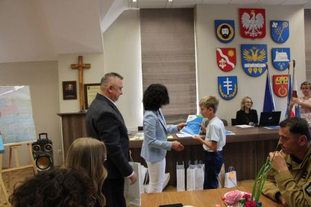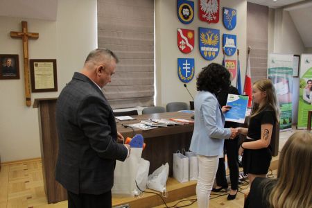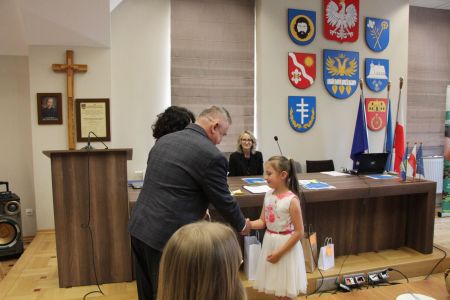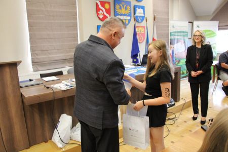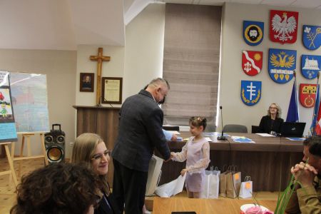 Podczas uroczystego rozstrzygnięcia konkursu, nagrody ufundowane przez Wójta Gminy Haczów, laureatom oraz wyróżnionym uczniom wręczył Sekretarz Gminy Haczów Piotr Rostek.