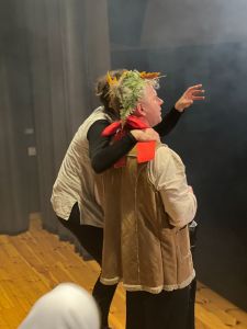 Spektakl obfitował w abstrakcyjne, nieoczywiste rozwiązania sceniczne, które stanowiły interesujące wyzwanie dla publiczności. Jednym z elementów budzących największe emocje był charakterystyczny dla Arystofanesa humor – niekiedy dosadny, wręcz rubaszny, lecz wpleciony w narrację w sposób subtelny i inteligentny. Twórcy umiejętnie balansowali między prostym, codziennym językiem a filozoficzną głębią rozważań, co sprawiało, że przedstawienie było zarówno przystępne, jak i refleksyjne.