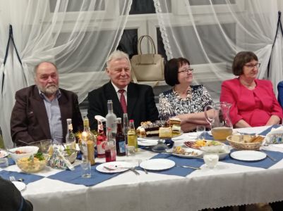 Uczestnicy zostali podjęci obiadem, następnie tzw. zimną płytą, oraz ciastem i napojami, a później ciepłą kolacją. W czasie spotkania wśród seniorów został rozegrany quiz, a nagrody zostały wręczone 10 osobom, “najwcześniej urodzonym” uczestnikom quizu. Do kolędowania i tańca przygrywał zespół “Duet” - para seniorów. Wystąpiły również dziewczyny ze scholi Wiktoria i Julia, które pięknie zaśpiewały kolędy. Z reakcji naszych gości można było wywnioskować, że mile spędzili czas podczas tego wieczoru.