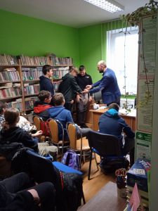 Pochodzi z pięknego Podlasia i niestraszne mu było podróżowanie, dlatego, że chciał spotkać się i porozmawiać się z młodzieżą klas VII i VIII na terenie naszej gminy. Spotkania odbyły się w bibliotece w Haczowie, Jabłonicy Polskiej, Jasionowie, (Dom Ludowy), Trześniowie (Szkoła) i Wzdowie w bibliotece. Miały charakter warsztatowy, a ich podstawowym celem było zmotywowanie uczniów do czytania książek, rozwijania pasji i zainteresowań w myśl zasady, którą autor starał się konkretnie sprecyzować w swojej książce pt. „Dlaczego warto czytać ?! Pasja zamiast nałogów- chyba że nałóg namiętnego czytania”. Pisarz z właściwym sobie poczuciem humoru, zdrowym dystansem, a jednocześnie z dużym szacunkiem do słuchaczy starał się przekazać, jak najwięcej przykładów na potwierdzenie słów, że warto czytać książki, czerpiąc radość, nie tracąc przy tym nic ze swej indywidualności i wolnego czasu.