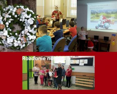 Wizyta świętego Mikołaja to oczekiwany dzień przez wszystkie dzieci. Tegoroczna aura zasiała w serduszkach najmłodszych uczniów niepokój i pytanie: czy uda się Mikołajowi dotrzeć do naszej szkoły? Jednak mu się udało! Jego wizyta sprawiła ogromną radość nie tylko dzieciom, ale również nauczycielom. Uczniowie klas 0 - VIII dostali słodkie prezenty, ale słodkości to nie jedyne niespodzianki, które czekały na naszych uczniów. W klasach I-III zaprezentowano prezentację pt.: „Prezent na Mikołaja – BEZPIECZEŃSTWO”, którą przygotowała p. Monika Owoc – sekretarz Rady Rodziców. Miała ona na celu przypomnienie dzieciom głównych zasad bezpieczeństwa w ruchu drogowym i zasad zabawy w czasie zimy. Następną niespodzianką dla tych uczniów okazał się interaktywny konkurs wiedzy o ruchu drogowym, przygotowany przez p. Anetę Opalińską. Zwycięzcy konkursu otrzymali nagrody rzeczowe, które wręczyła Pani Dyrektor Iwona Pelczarska.