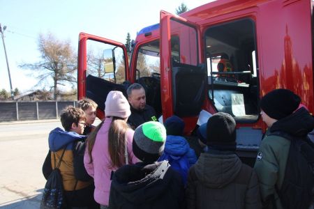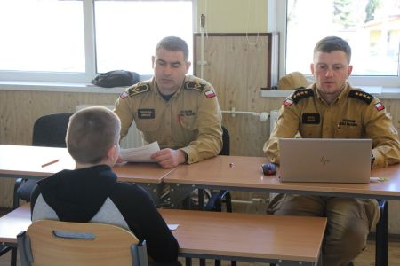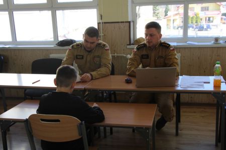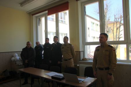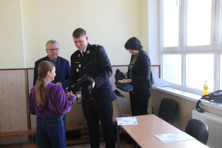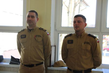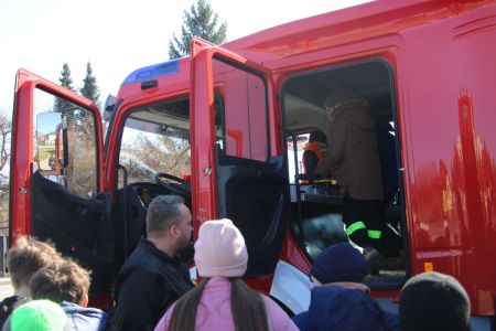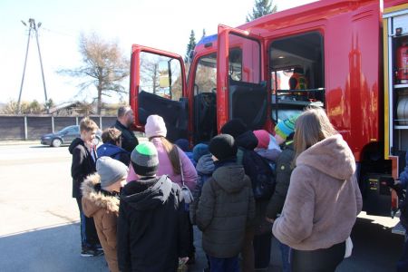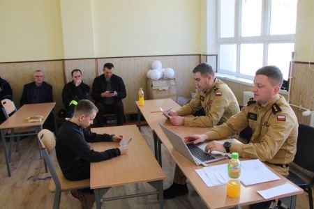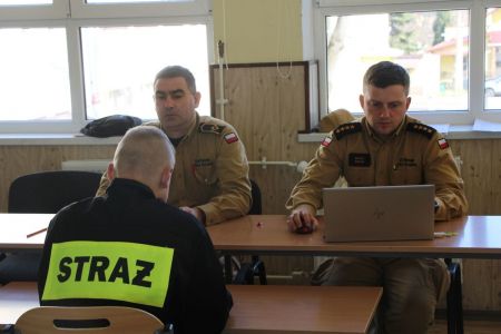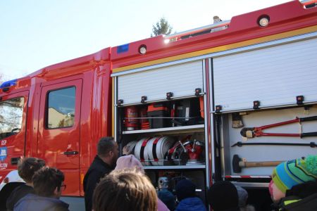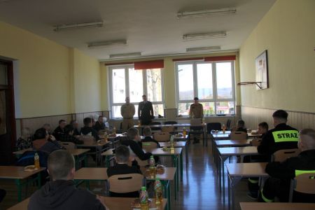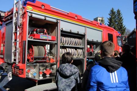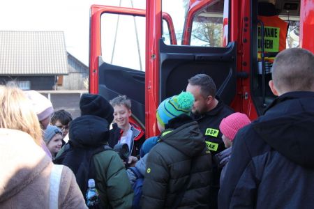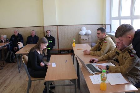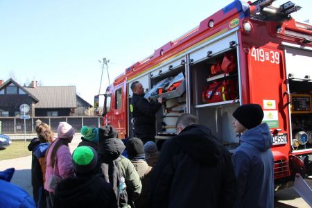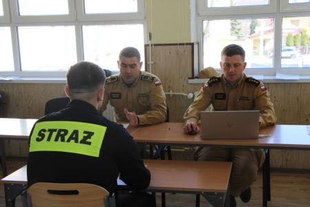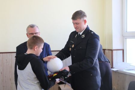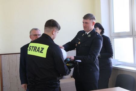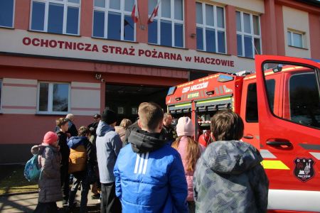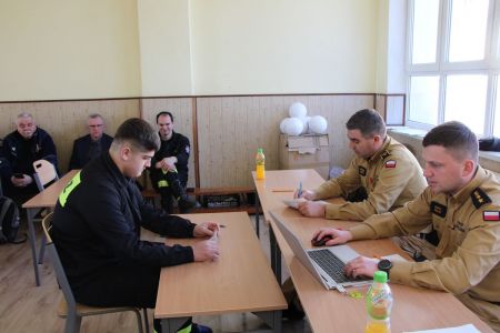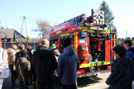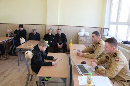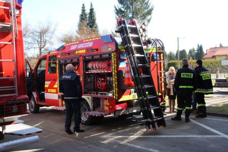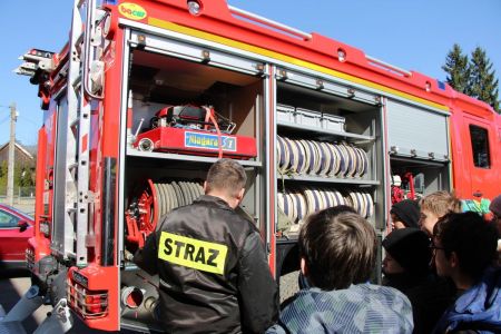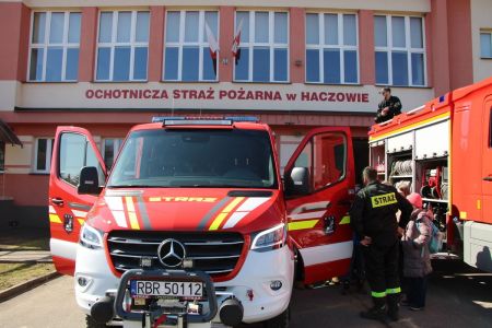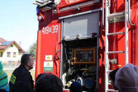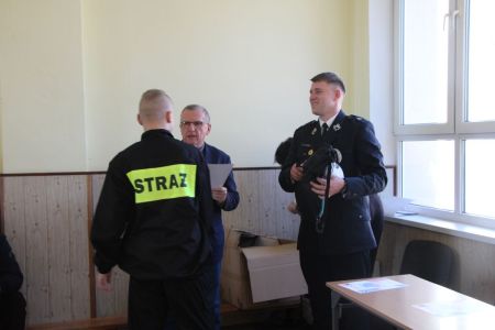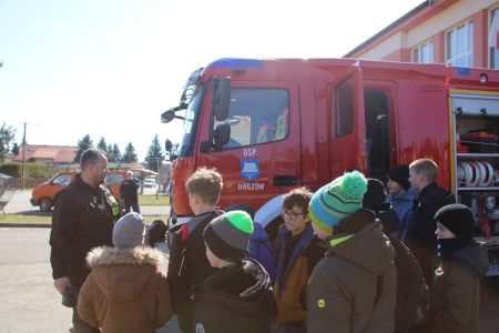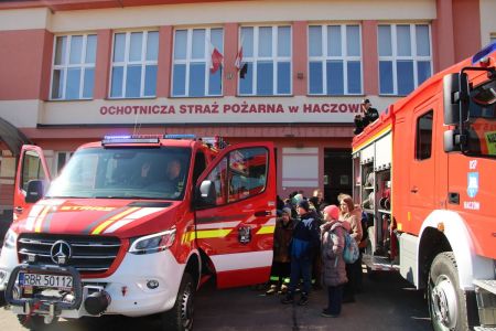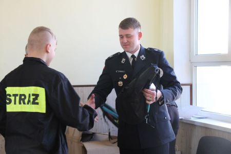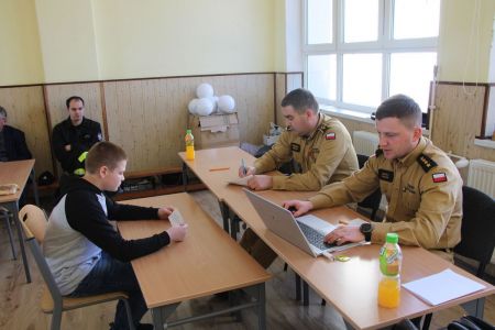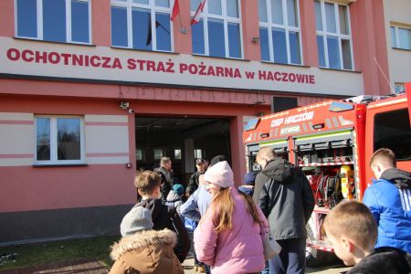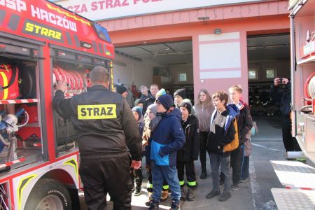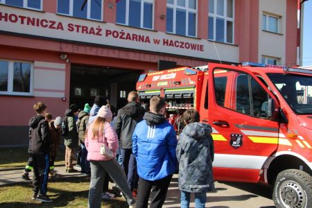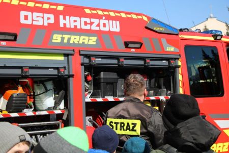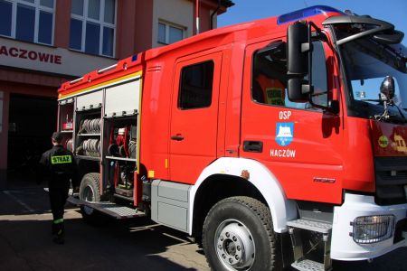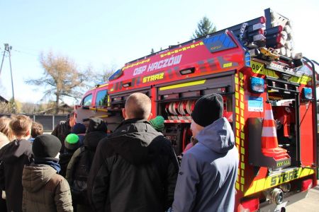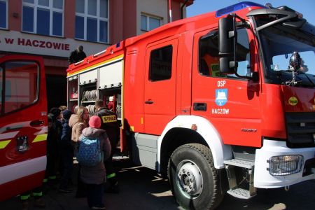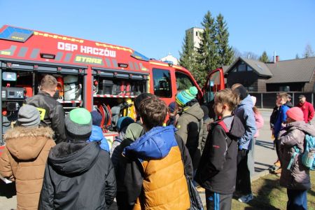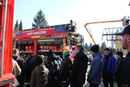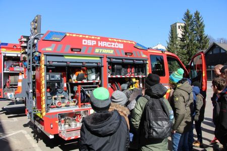 W przerwie pomiędzy częścią pisemną i ustną uczestnicy mieli okazję zapoznać się ze wyposażeniem wozów strażackich jednostki Ochotniczej Straży Pożarnej w Haczowie.