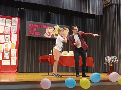 Uzupełnieniem dekoracji scenicznej była wystawa prezentująca portrety mam wykonane przez dzieci uczęszczających na Kółko Plastyczne w GOKiW w Haczowie. Akademię poprowadził Pan Krzysztof Błaż. Na zakończenie akademii przygotowano iluzjonistyczne show dla dzieci. Publiczność z ogromnym zaangażowaniem uczestniczyła w magii prezentowanej przez iluzjonistę Przemysława Wilka.
