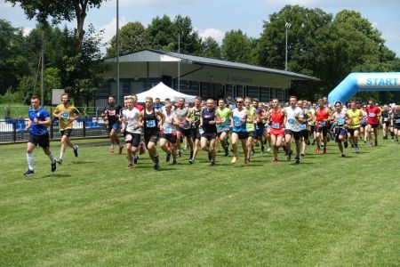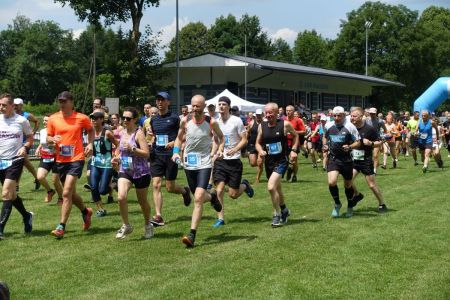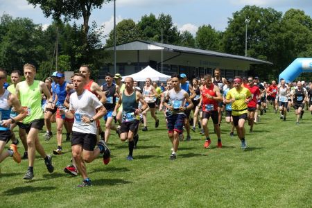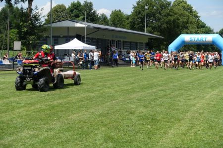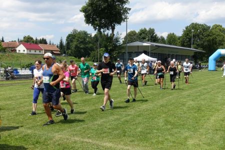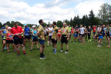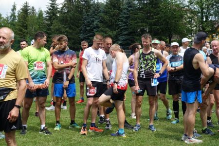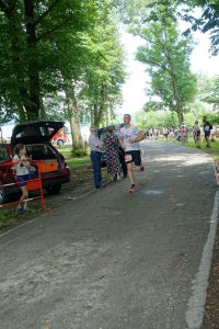 O 13.00 wystartowali dorośli, którzy dopingowani przez mieszkańców wykonali rundę honorową ulicami Haczowa. Na starcie, na stadionie stanęło ponad 150 zawodników, którzy swój bieg kończyli na mecie zlokalizowanej w Parku dworskim, gdzie rozbrzmiewała muzyka zapowiadająca imprezę „Lato w Haczowie”. Trasa biegu i marszu prowadziła drogami polnymi, szutrowymi i ciężkimi w tym roku do pokonania leśnymi ścieżkami.