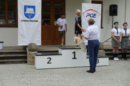O godzinie 11.00 na stadionie LKS swoje rywalizacje w bieganiu rozpoczęły dzieci. 200 młodych zawodników podzielonych na cztery kategorie wiekowe z prawdziwym duchem rywalizacji walczyły o podium. Wszystkie dzieci, oprócz zasłużonego medalu, otrzymały super nagrody – pluszaki i piłki ufundowane przez Fundację PGE i firmę DrogBud. Najlepsi z każdej kategorii zostali uhonorowani na podium nagrodami, które wręczył Poseł na Sejm RP Adam Śnieżek i Wójt Gminy Haczów Stanisław Jakiel.