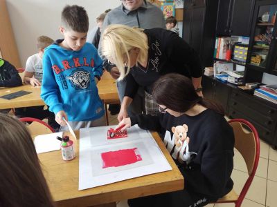 W ostatnich kilku tygodniach uczniowie klas VII i VIII ze Szkoły Podstawowej w Haczowie, w ramach zajęć plastyki, uczestniczyli w warsztatach graficznych techniką linorytu w Gminnym Ośrodku Kultury i Wypoczynku w Haczowie.