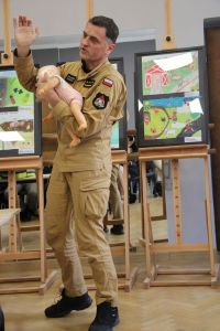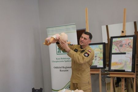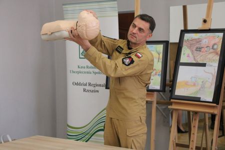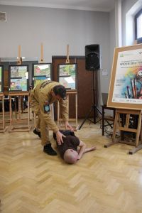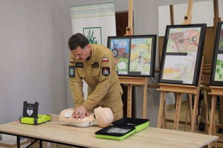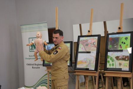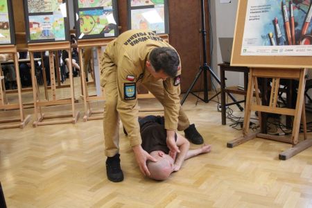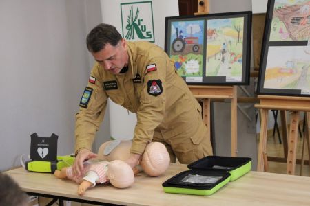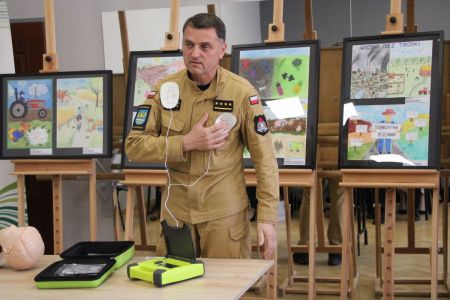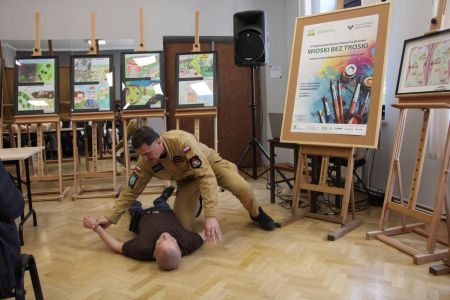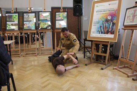 Każdy z uczniów otrzymał nagrody rzeczowe, które w imieniu Wójta Gminy Haczów, wręczył Sekretarz Gminy Piotr Rostek. Po rozdaniu nagród Zastępca Komendanta Powiatowego Państwowej Straży Pożarnej w Brzozowie st. kpt. mgr inż. Wojciech Sobolak omówił podstawowe zasady udzielania pierwszej pomocy m.in. w przypadku nagłego zatrzymania krążenia, zasłabnięcia i omdlenia, oparzenia oraz zakrztuszenia u dzieci i dorosłych.