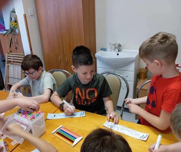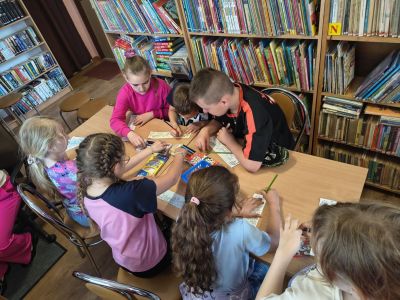 Na zakończenie uczniowie wzięli udział w części plastycznej – kolorowali zakładki do książek, które będą mogli wykorzystać podczas własnej lektury. Ich prace były kolorowe, kreatywne i starannie wykonane.
