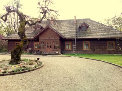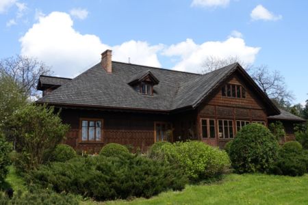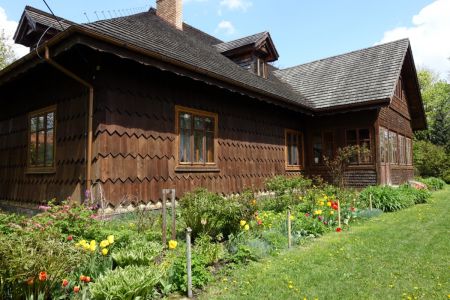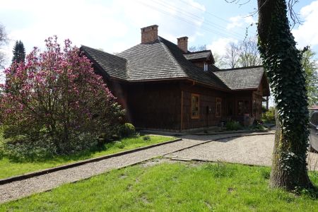 z 1860r.na kamiennym podmurowaniu, pokryty gontem, konstrukcji zrębowej z trzema gankami, ściany obite gontem w tzw. rybią łuskę i spichlerz z I połowy XIX wieku. W 1996 roku dwór został częściowo zniszczony przez pożar. W 1997 roku został wstępnie zabezpieczony. zrekonstruowany i odrestaurowany.